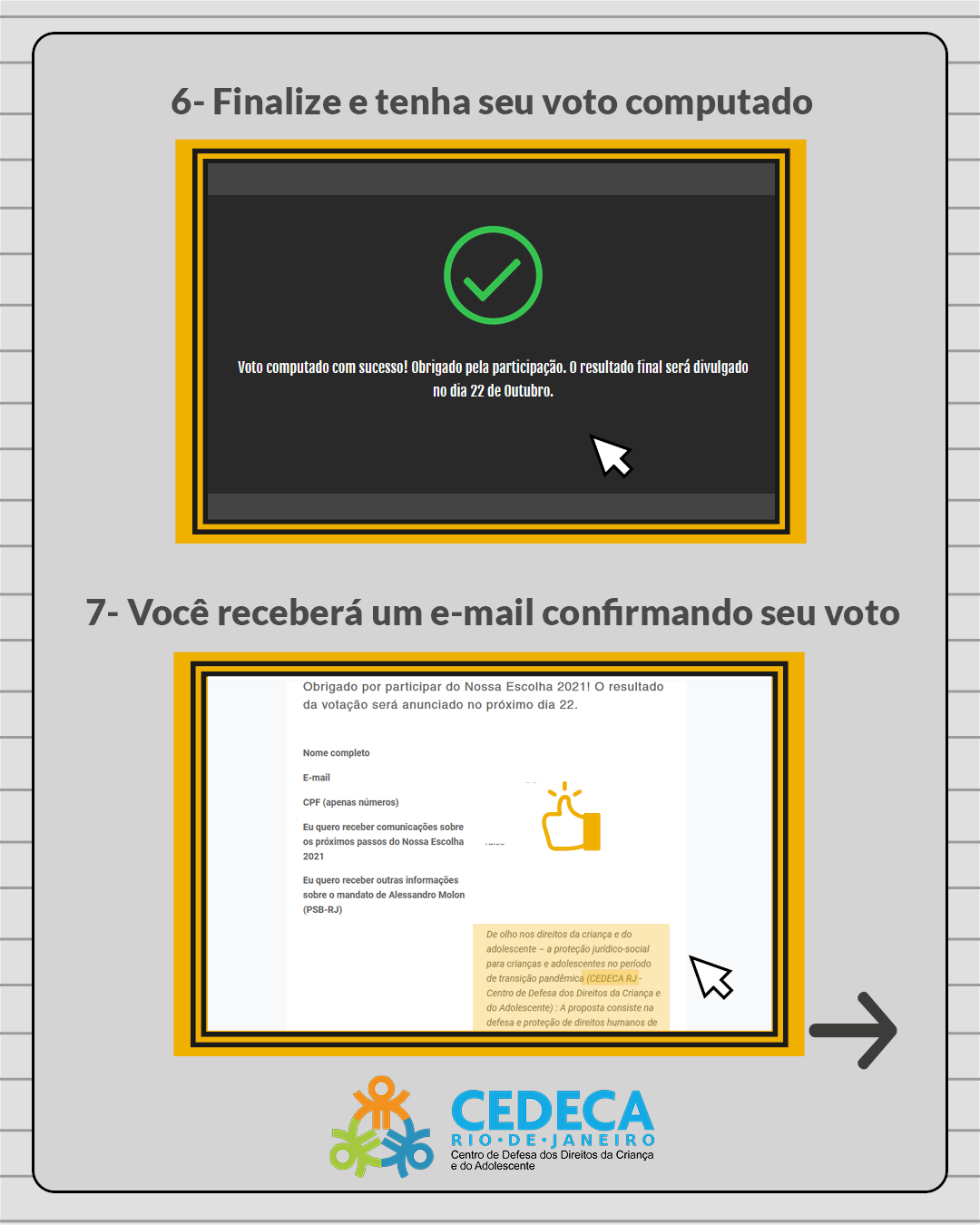 Ao final da votação você receberá uma confirmação, e um e-mail.