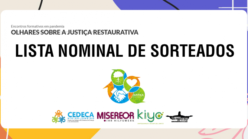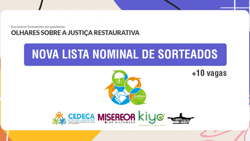 Após finalizada a chamada aos 30 primeiros sorteados, o Centro de Defesa dos Direitos da Criança e do Adolescente do Rio de Janeiro – CEDECA RJ divulga nova lista nominal de sorteados para mais dez vagas para os Encontros Formativos em Pandemia – Olhares sobre a Justiça Restaurativa. A lista