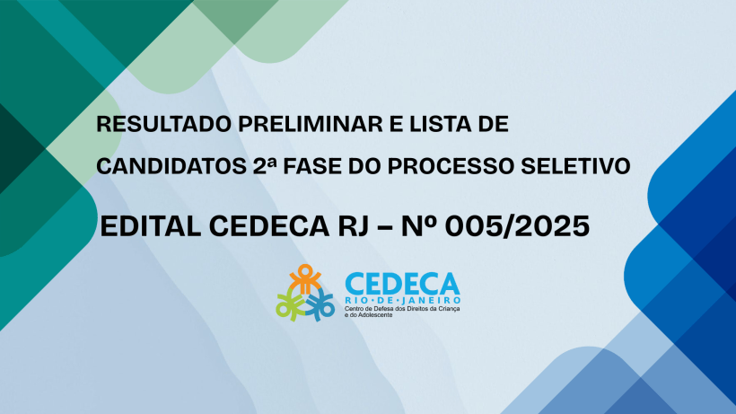 Lista, com o primeiro nome e os últimos números telefone celular, dos(as) candidatos(as) aprovados(as) para a 2ª fase do processo seletivo simplificado para contratação imediata e cadastro de reserva de advogado(a), para compor a equipe Centro de Defesa dos Direitos da Criança e do Adolescente – CEDECA Rio de Janeiro.Em