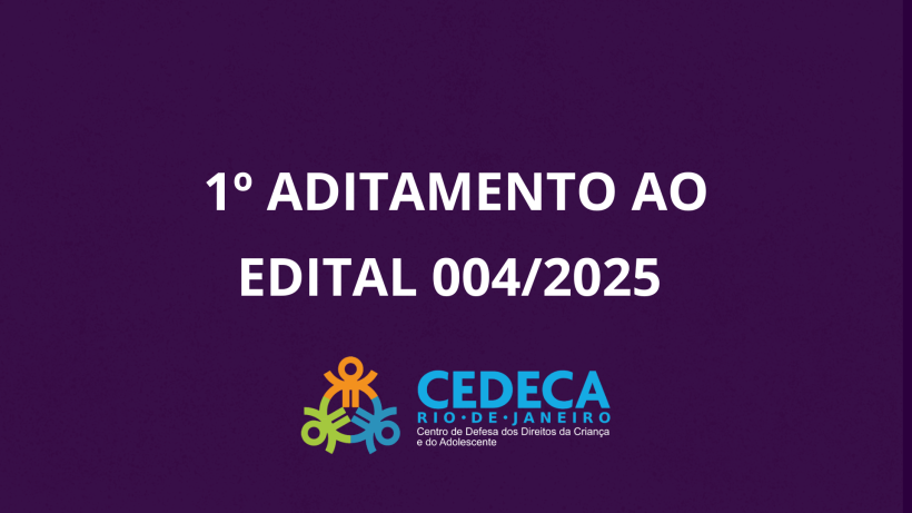 1º Aditamento ao Edital 004/2025O CENTRO DE DEFESA DOS DIREITOS DA CRIANÇA E DO ADOLESCENTE – CEDECA RIO DE JANEIRO, no uso de suas atribuições legais, torna público a alteração ao edital 004/2025 referente ao processo seletivo simplificado para contratação de Técnico(a), para compor a equipe do Projeto: “Fortalecendo o